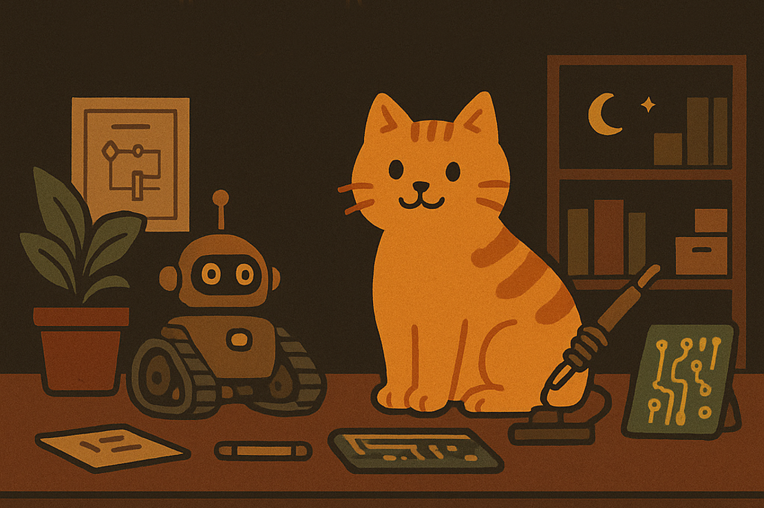 Тут на тебе чекає дивовижний світ робототехніки, програмування та електроніки. Я — твій кіт-наставник, який любить паяти, тицяти лапкою по клавіатурі й відкривати нові технології. Разом ми перетворимо складне на просте й цікаве, щоб ти зміг навчатися без нудьги та з азартом.