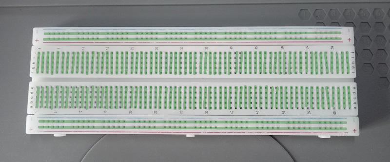 На світлині вище зображена стандартна макетна плата. Зеленими напівпрозорими лініями намальовано те як отвори плати електрично з'єднані між собою. Зверху і знизу (довгі поздовжні лінії) - це шини живлення. Посередині плати короткі шини - це для встановлення елементів. Для з'єднання компонентів і елементів між собою використовуються дроти з пінами: