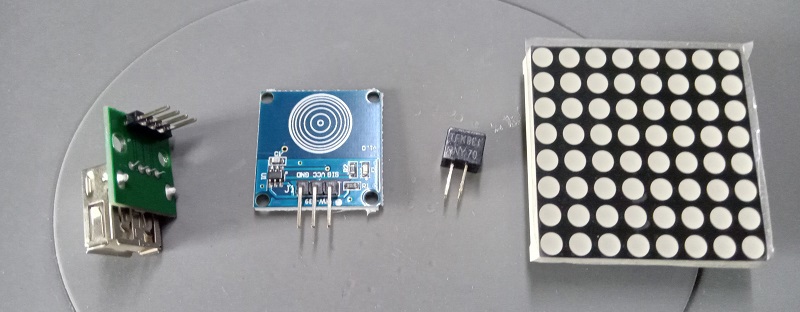 Окремо можна докупити будь-який необхідний компонент, в залежності від того, що ви хочете зробити. Наприклад на світлині знизу представлені usb-порт, модуль сенсорної кнопки, інфрачервоний датчик перешкод і матриця світлодіодів: